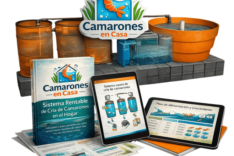 Aquí descubrirás cómo construir el sistema, controlar el crecimiento de los camarones, organizar el espacio, mejorar la cosecha y escalar tu producción incluso en lugares pequeños. Todo explicado con ejemplos reales y resultados comprobados.